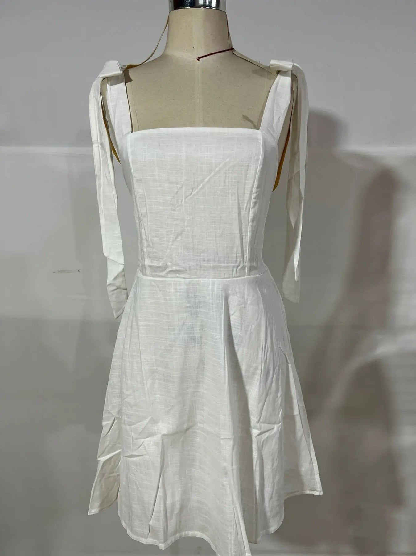 The Hallie dress beautifully merges simplicity with elegance, featuring a stunning A-line cut that flatters every body shape. Designed with wide shoulder straps adorned with charming bow details, this dress is crafted from light, high-quality cotton, ensuring a romantic and comfortable look. Perfect for summer days or special occasions, the Hallie dress is a versatile addition to your wardrobe.