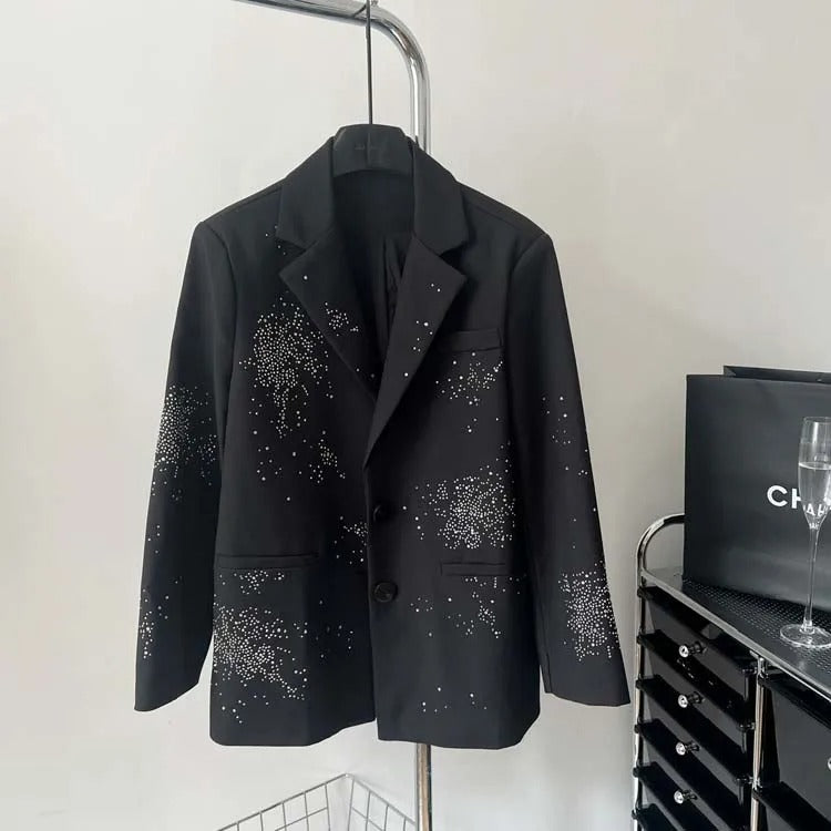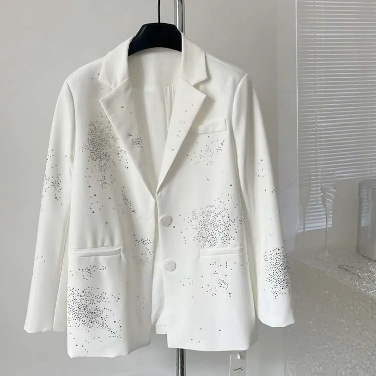The Savannah Blazer seamlessly blends classic elegance with a hint of glamour. Its minimalist design is enhanced by subtle glitter accents, making it perfect for both formal and casual occasions. This oversized blazer offers a relaxed fit, ensuring comfort without compromising style.